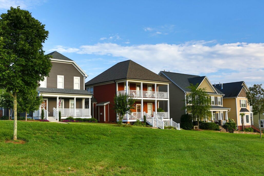 Aerial view of residential home in Greenville, South Carolina showing dark asphalt shingle roof replacement and light-colored siding with manicured lawn